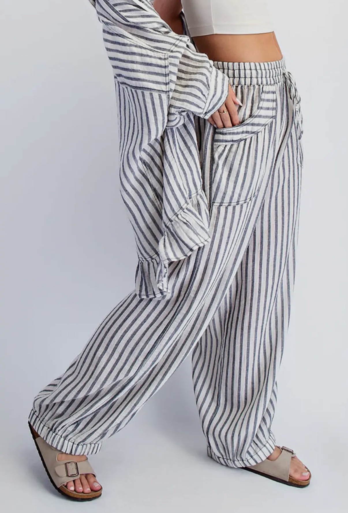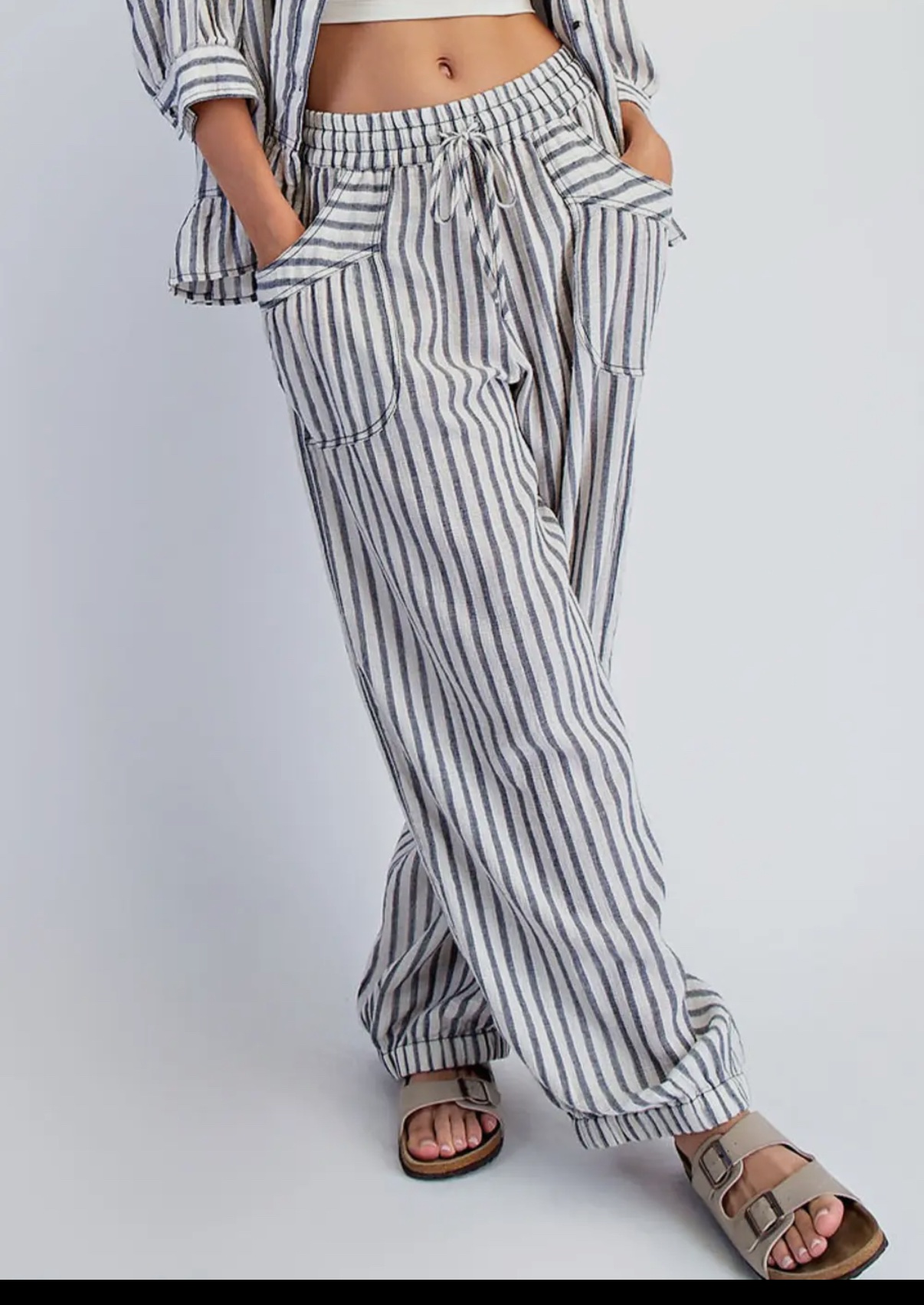 Stripe Soft Wash Linen Blended Pants